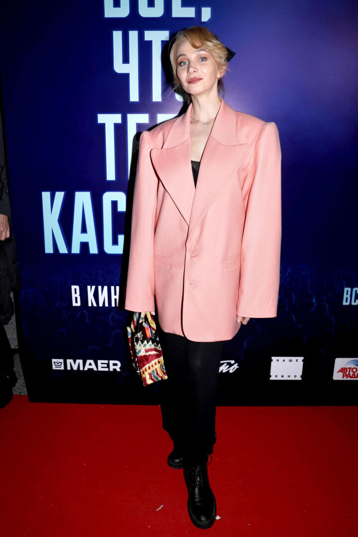 В московском киноцентре «Октябрь» отгремела премьера, пожалуй, самой музыкальной картины этого года. «Все, что тебя касается» — история 17-летней Маши, которая ищет отца на концерте группы «Звери». Солист коллектива, Рома Зверь, выступил продюсером и композитором фильма. Съемки велись в Москве, Подмосковье и на стадионном концерте «Зверей» в «Лужниках», на котором присутствовало более 45 тысяч зрителей. Поздравить создателей ленты пришло много звезд. В чем они были — узнаем прямо сейчас. Голосуем за понравившийся образ! Солистка мюзиклов, актриса Театра оперетты и озвучания пришла на премьеру в беспроигрышном образе: оверсайз жакет актуального цвета, черные брюки и акцентная сумочка, где сочетаются использованные в аутфите цвета. Понравилось, что девушка заправила штанины в ботинки — на манер хайповых «аладдинов». 25-летняя актриса выбрала тотал уайт, и выглядеть образ должен был в духе олд мани. Подвела посадка и длина брюк: они на девушку просто не сели. А эстетика аристократов таког
