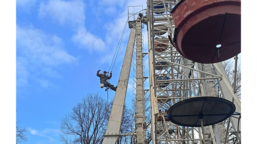 В Центральном парке культуры и отдыха имени 1000-летия Брянска обследуют аттракционы, приводят их в порядок. Пришел черед обновить самый громоздкий из них. На опорах Колеса обозрения появились промышленные альпинисты.