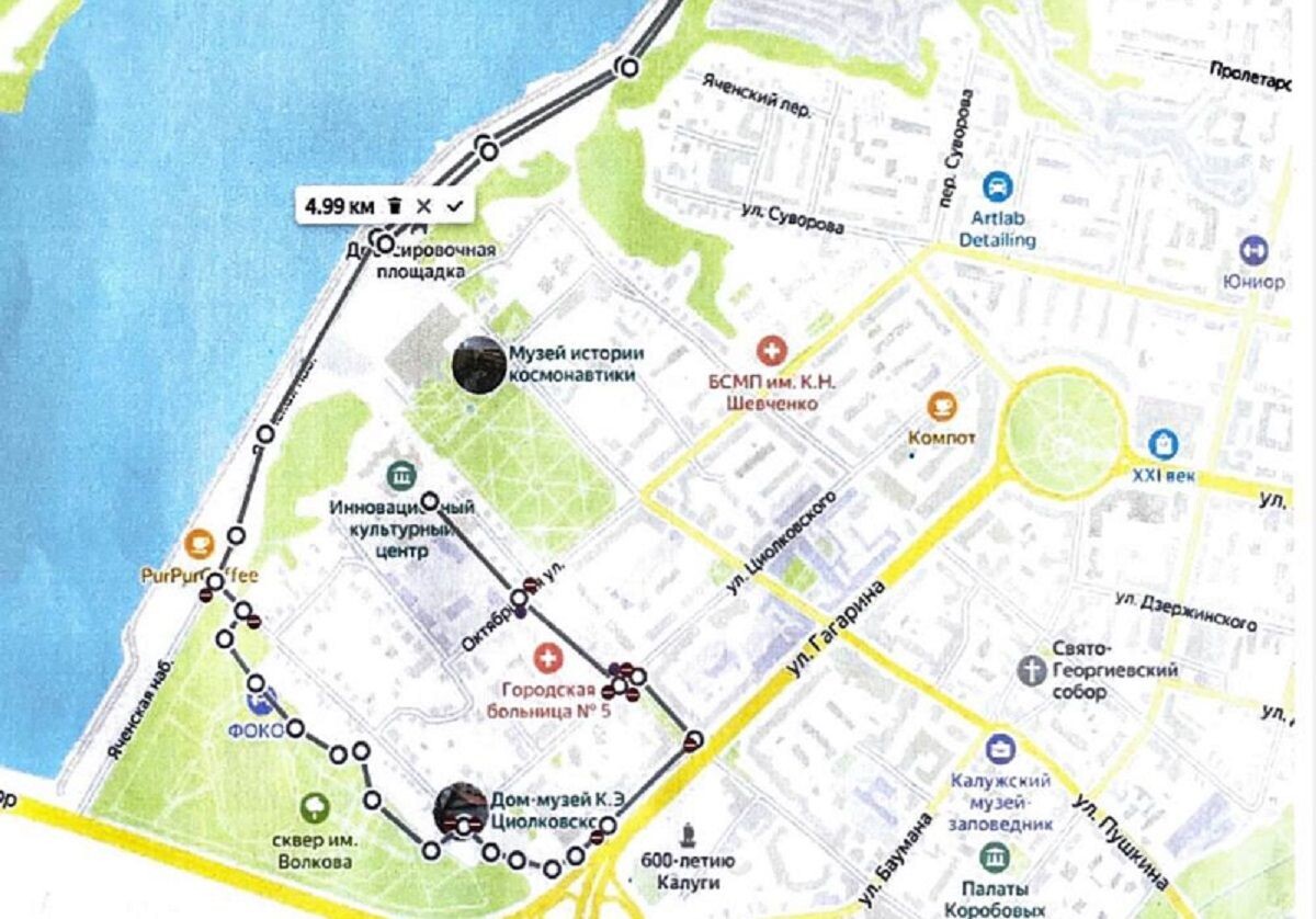 В Калуге по ряду улиц в субботу, 12 апреля будет перекрыто движение для автотранспорта. Это связано с проведением большого спортивного забега, посвященного Дню космонавтики, сообщает горуправа Калуги. «В связи с проведением забега «Полет первых» в рамках Фестиваля «Космические выходные в Калуге», 12 апреля с 07:00 до 11:30 мск будет временно ограничено движение транспорта по ряду улиц», - говорится в сообщении. В частности, перекрытие коснется следующих мест города: - От ГБУ КО «Инновационный культурный центр» до улицы Октябрьской; - По улице Октябрьской (от д. 17 к. 2 до д. 58); - По улице Космонавта Комарова (от ул. Октябрьской до ул. Циолковского); - По улице Циолковского (от д. 44 до сквера им. Волкова); - По бульвару им. Комарова (от ул. Циолковского до дублера ул. Гагарина); - По дублеру улицы Гагарина (от д. 11 до сквера им. Волкова); - По Яченской набережной (от ул. Калуга-Бор до пер. Лаврентьевского). Водителей просят заранее планировать пути объезда.