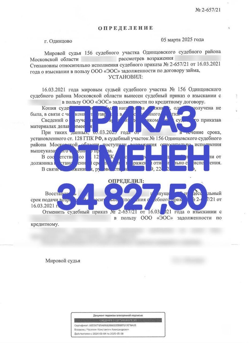 «Долг из прошлого»: как мы отменили судебный приказ, которому уже 4 года 🕰️📄 Судебный приказ от 16.03.2021 года был вынесен в пользу коллекторского агентства 🏢 — взыскателя, который спустя годы «вспомнил» о имеющемся долге 💸. Само обязательство оказалось значительно старше, чем приказ 📆. Несмотря на прошедшее время ⏳, мы добились отмены приказа 💪, доказав суду 🧑⚖️, что права доверительницы были нарушены, а коллекторы не представили надлежащих доказательств долга 📉. История напомнила: даже если долг старый, это ещё не повод платить без разбора 🤷♀️. Иногда нужно просто сказать — «нет, спасибо» 🙅♀️ и пойти в суд 😊.