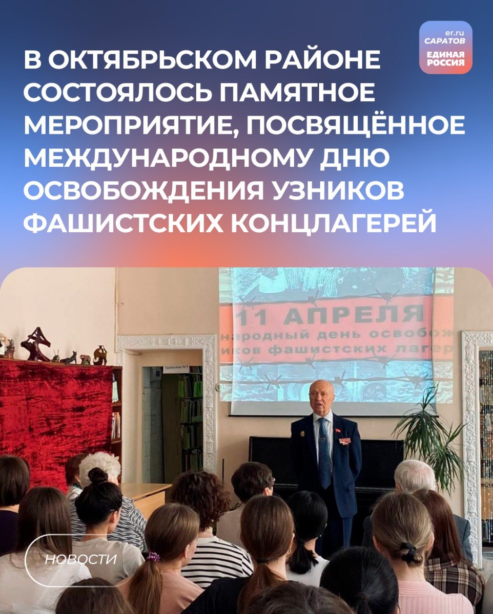 🙏🏼В рамках проекта «Историческая память» партии «Единая Россия» в Центральной городской библиотеке для детей и юношества состоялось мероприятие, на котором почтили память тех, кто пережил ужасы фашистских концлагерей. На мероприятии присутствовали депутат Саратовской городской Думы Ирина Видина и заместитель председателя Саратовского регионального отделения Российского союза бывших малолетних узников концлагерей Алексей Мартынов, который обратился к собравшимся с приветственным словом. Мероприятие завершилось чаепитием, на котором ветераны поделились воспоминаниями о тех страшных событиях. 💬«Пусть этот день станет еще одним напоминанием о том, насколько важно сохранять мир и согласие между народами. Светлая память о тех, кто пострадал от фашистской агрессии, всегда будет с нами», - отметила Ирина Видина.
