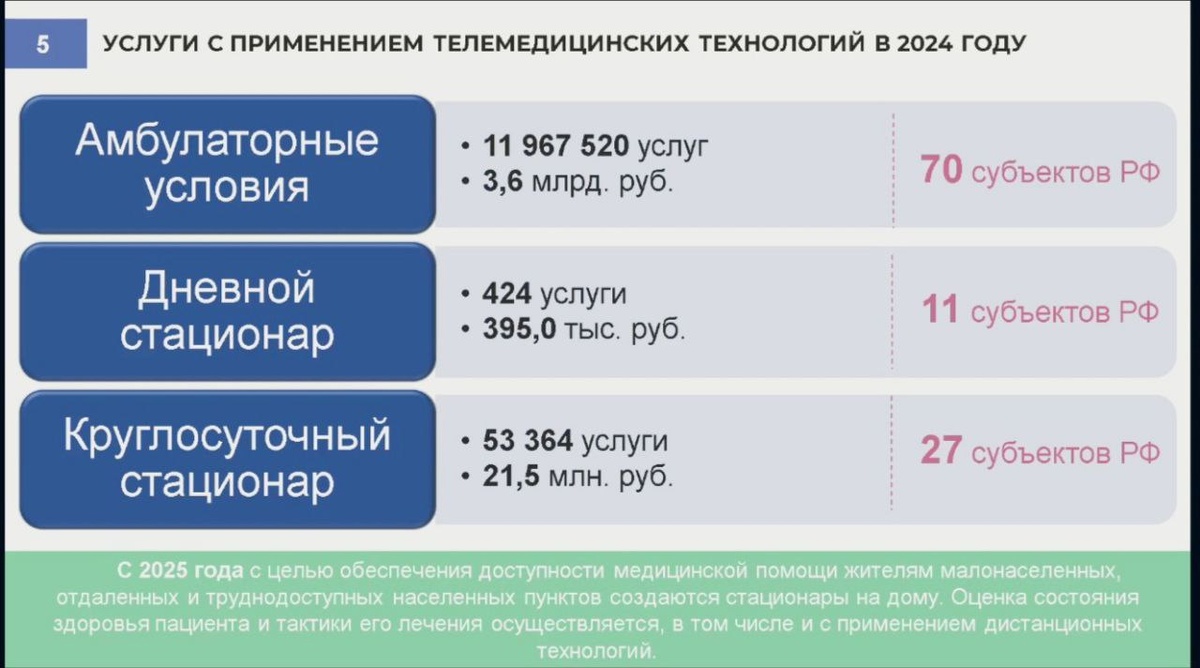 По данным ФОМС, в 2024 году телемедицина была крайне востребована в амбулаторном звене, исходя из данных ФОМС