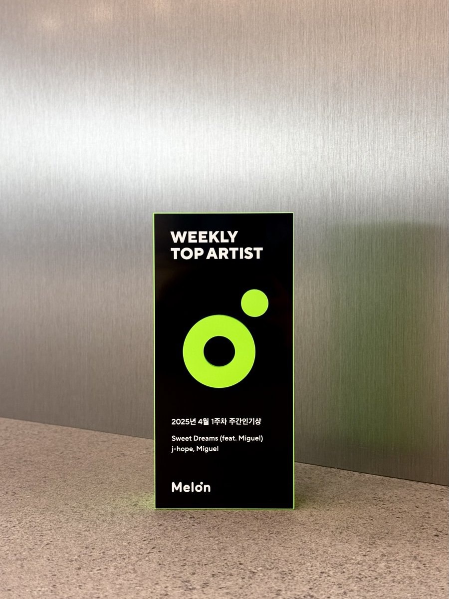 🎋 Melon в X: Награда Melon "Еженедельный хит" — 1-я неделя апреля. Дзынь-дон! Трофей за "Еженедельный хит" уже доставлен! На этой неделе награду получает наш замечательный солнечный бурундук Хоби 🐿️✨ Поздравляем Джей-Хоупа с первой победой за песню "Sweet Dreams" (feat. Miguel). Трофей будет вручён артисту лично. А ты тоже можешь побороться за награду на следующей неделе! #JHOPE 🐉🌱[https://dzen.ru/id/5f3ce54ccaeef80d2efd6e05]🌱🐉