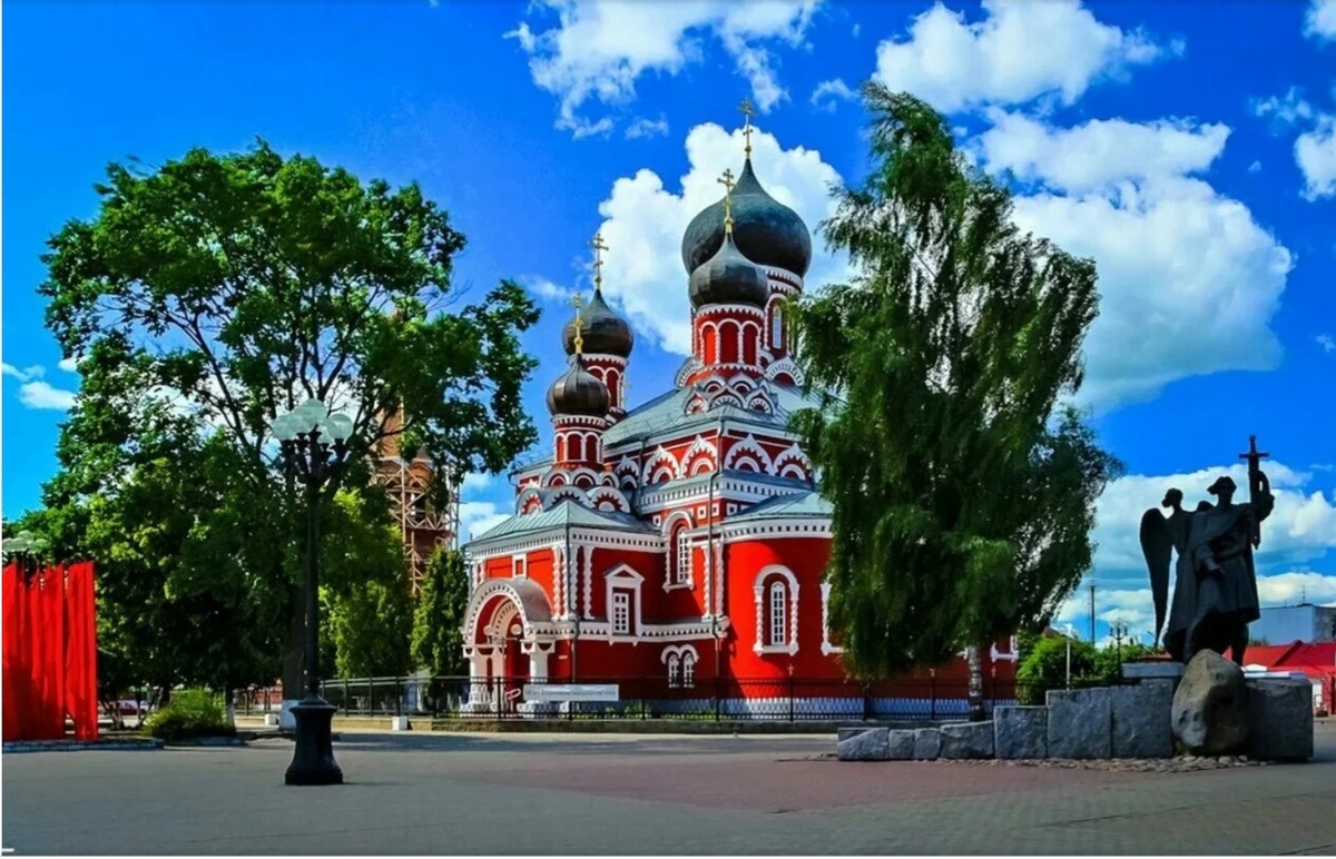 Среди нескольких архитектурных проектов выбрали вариант собора с девятью куполами, тремя апсидами, выразительным контуром и достаточным внутренним объемом архитектора П. Меркулова. В сентябре 1874 г. храм был освящен во имя Воскресения Христа Спасителя. Строительство длилось три года… Великолепие храма привлекло внимание, и в 1877 г. гравюра с его изображением появилась в петербургском еженедельнике “Нива”. Собор стал неотъемлемой частью городской жизни, являясь не только архитектурной доминантой, но и центром религиозной жизни. С приходом советской власти все изменилось. В 1937 г. спилили кресты с куполов, внутреннее убранство разграбили, собор был превращен в зернохранилище, а колокольня переоборудована в парашютную вышку. Во время войны в храме снова начали проводить богослужения. Хотя впоследствии настоятель был арестован советскими властями, закрывать собор не стали. И сегодня он является одним из символов города, свидетелем его истории и драматических событий.