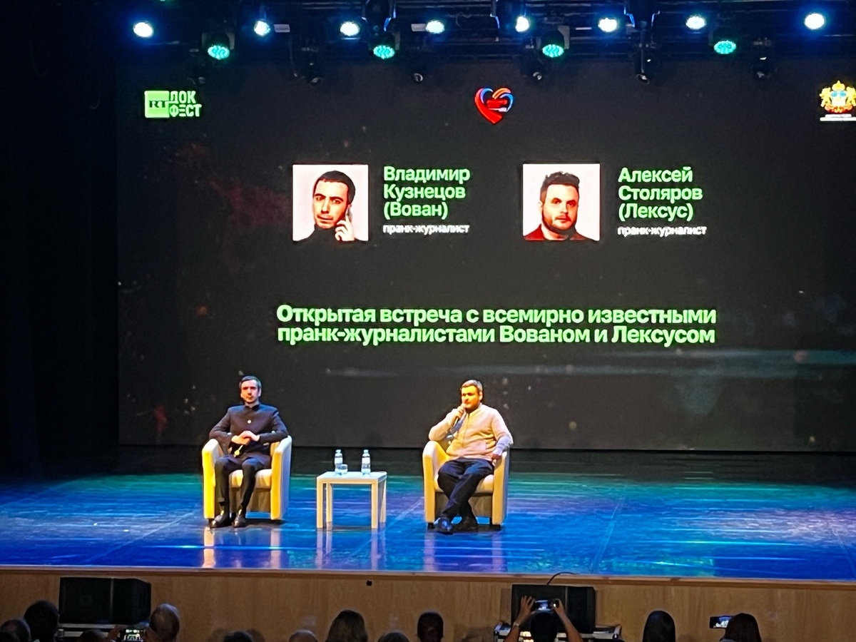 Встреча прошла 10 апреля в Доме музыки 10 апреля большой концертный зал в Доме музыки Павла Герштейна практически полностью заполнился костромичами. Представители СМИ, общественных организаций, студенты, жители города собрались, чтобы услышать о том, как борьба с врагом ведется не только в зоне СВО. Устами борцов за справедливость вещали всемирно известные пранкеры Вован и Лексус. Открытая встреча с пранк-журналистами состоялась в рамках международного фестиваля документального кино «RT.Док: Время наших героев». Он проходит в Костроме с 9 по 11 апреля. Подробнее о нем читайте в нашем материале. Вован и Лексус — псевдонимы двух российских пранкеров, Владимира Краснова и Алексея Столярова. На всю страну они прославились благодаря телефонным розыгрышам знаменитостей. С начала специальной военной операции Владимир и Алексей стали выводить на чистую воду зарубежных политиков и мошенников. В разговоре они представляются чужими именами, при том не пародируя даже голос. Вместо этого Вован и Ле