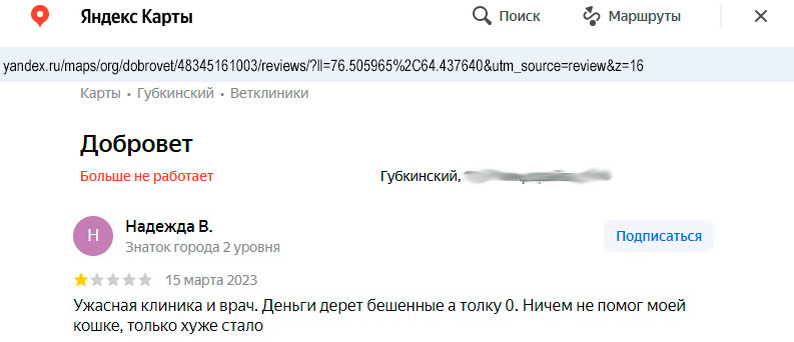 Надежда Валишина, пишет: «Ужасная клиника и врач. Деньги дерет бешенные а толку 0. Ничем не помог моей кошке, только хуже стало» Надежда подтверждает сказанное другими отзывами уже не раз. Возможно, чтобы не потратить свои деньги впустую, а вашему животному не стало хуже стоит внимательнее подходить к выбору клиники. Делайте выводы сами, и решайте стоит ли рисковать или всё же перестраховаться и найти правильную клинику? ⛔ 🙏 #Отзыв #Добровет #Тюмень #Губкинский #Ветеринар