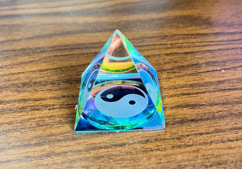Вот взгляните - стеклянная пирамида. В её основании изображён символ Инь-Ян. Никаких других рисунков на эту фигуру не нанесено. Символ всего один, это факт и это - Истина.