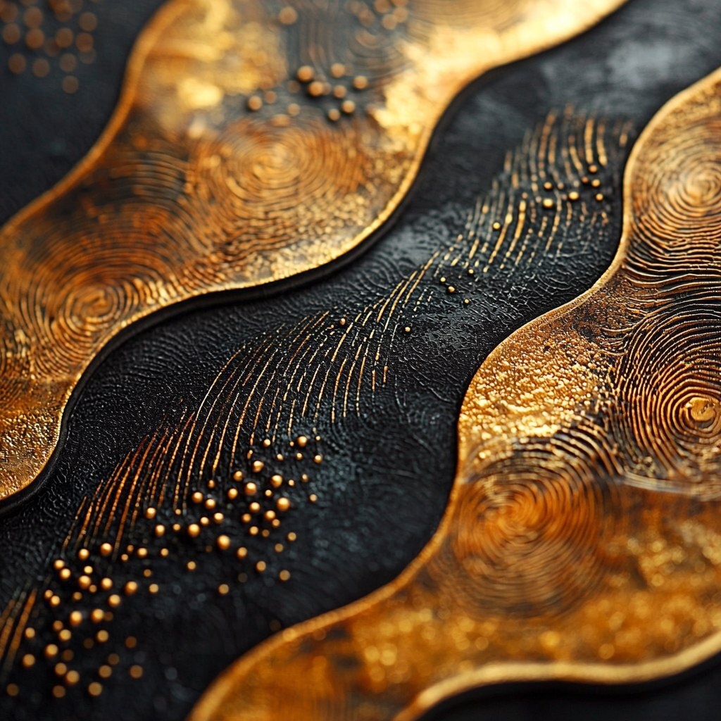 Создано на основе запроса: Detailed shot of an abstract background with intricate black and gold patterns, soft light highlighting the