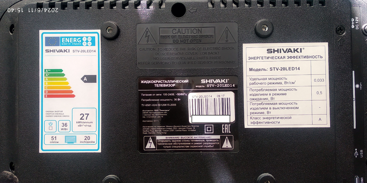 Всем салют! ТВ В SHIVAKI STV-20LED14, принесли с нерабочей подсветкой летом 2024 года. Тогда я не писал ничего. Решил, не о чем. А теперь принесли ещё раз, и после всей истории с этим ТВ уже есть, что описывать. Итак. Вот фото состава ТВ. Разборка, хоть ТВ и небольшого дюйма, геморройная)). Рамка снимается не так легко, как кажется, а вставляется ещё хуже. Пока несколько раз разбирал-собирал, замучался. Оказалось - не работает один светодиод. Подсветка состоит из двух планок по пять светодиодов. На одной планке - все норм, а на второй- один неисправный светодиод. Светодиоды на 3В. Заменил неисправный светодиод. Проверил ток подсветки. Как в паспорте))). Убавил, удалив один резистор из нескольких параллельно включённых. Ничего нового. Маркировка планок. Перебрал все возможные цифры и комбинации, не нашёл такие планки. Потому отдал с одним заменённым светодиодом, предупредив хозяина. Год не проработал, вернулся. Снова поискал планки, не нашёл. Выдаёт не то, что нужно. В моём