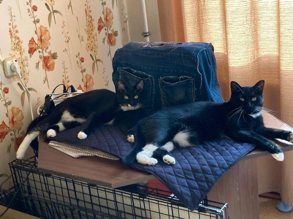 "Степашка думает , что Миклушка его сын. А Миклушка думает, что Степашка его отец. Правая нога у обоих одинакового окраса 🤓. Привет из дома!!!!"
