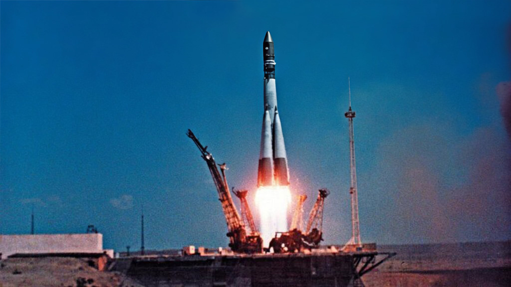 12 апреля 1961 года в 9 часов 07 минут по московскому времени в нескольких десятках километров севернее посёлка Тюратам в Казахстане с космодрома Байконур был осуществлён пуск ракеты-носителя «Восток», которая вывела на земную орбиту первый в мире космический корабль-спутник с Юрием Гагариным на борту. Его полёт продолжался 1 час 48 минут, во время нахождения на орбите он поддерживал радиосвязь с Землёй, вёл наблюдение в иллюминаторы, контролировал работу систем корабля. 9 апреля 1962 года вышел Указ Президиума Верховного Совета СССР, согласно которому 12 апреля стало Днём космонавтики. С инициативой учредить День космонавтики выступил дублёр Юрия Гагарина во время первого космического полёта человека — лётчик‑космонавт Герман Титов. Он также предложил от имени правительства СССР обратиться в ООН с идеей организации Всемирного дня космонавтики. В ноябре 1968 года на конгрессе Международной федерации авиационного спорта 12 апреля было объявлено Всемирным днём авиации и космонавтики. 8