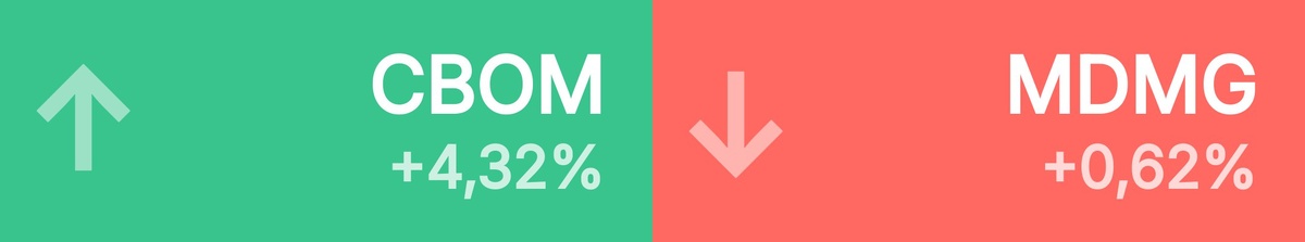 🔺 Топ-10 лидеров роста среди крупнейших акций: МКБ • 7,89 ₽ • 4,32% РуссНефть • 122 ₽ • 4,18% Татнефть • 682 ₽ • 3,96% Юнипро • 1,72 ₽ • 3,61% Новатэк • 1 098 ₽ • 3,43% Татнефть п • 652 ₽ • 3,38% Северсталь • 1 057 ₽ • 3,36% НЛМК • 132 ₽ • 3,12% РусАгро • 130 ₽ • 2,96% ГК Самолет • 1 099 ₽ • 2,95% 🔻 Топ-10 лидеров падения среди крупнейших акций: