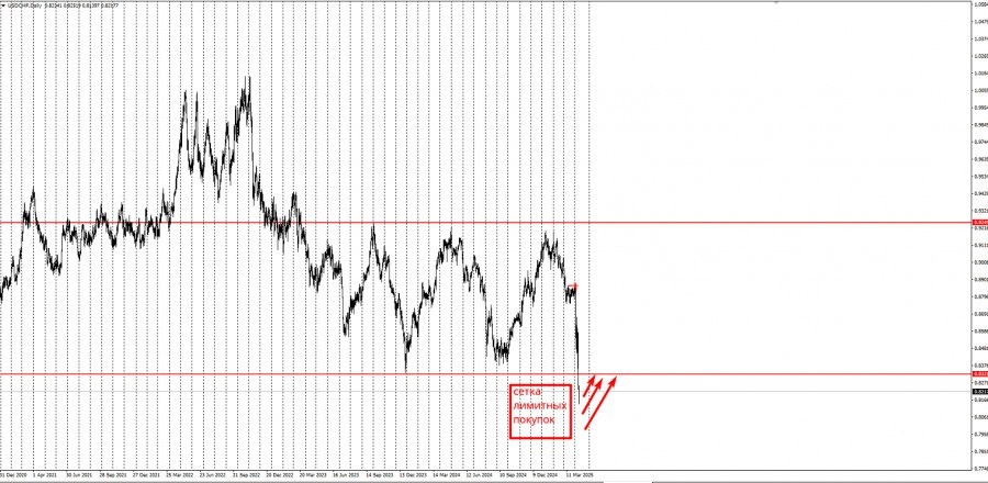 https://basechop.ru/wordpress/?p=38092 Добрый день уважаемые трейдеры! Представляю вашему вниманию торговую идею по USD/CHF. Итак, сегодня инструмент героически переписал минимум сразу двух последних лет и в настоящий момент торгуется с понижением. Предлагаю торговую идею на коррекционное лонговое движение: Начиная с текущих цен и ниже – возможна установка сетки лимитных покупок с шагом 500 п по 5 знаку. После набора лонгов на падении выход из сетки с профитом осуществляется на тесте пробитого уровня 0,83217 снизу, либо +1 п по первому ордеру в сетке, либо +1000 п по прибыли первого ордера. Напоминаем, что работа сеточным методом торговли предусматривает существенные по времени и расстоянию удержания позиций. По этой причине рекомендуем использовать счета без начисления свопов, не увеличивать объёмы в сетке (0,01 стандартного лота на каждую 1000$ депозита) и рассчитывать на проход против себя до 6000 т. пунктов по 5 знаку. Торговая идея представлена в рамках “Сеточного метода…