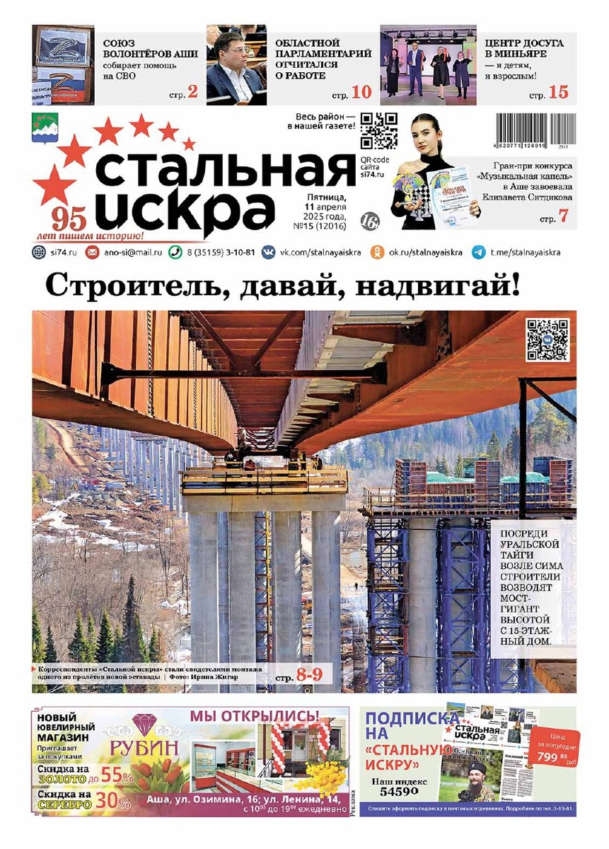 💫🗞Свежий номер районного еженедельника «Стальная искра» придёт к своим читателям в пятницу, 11 апреля. Чтобы эти встречи продолжались весь год — подпишитесь на «Стальнушку»!Именно сейчас идёт подписная кампания на 2-е полугодие 2025 года. Хорошая новость — цены остались прежними! Прежним, гарантируем, останется и наполнение каждого номера достоверными, важными, интересными новостями об Ашинском районе и его жителях. 📍 Кто виноват в чрезвычайной ситуации в Аше 18-20 марта? Ответ даёт администрация АМР и областной СК. Читайте на стр. 2 📍 Глава Миньяра Г.В. Сибагатулина отчиталась о работе администрации за прошлый год. Какую оценку работе дали миньярцы? Ответ — на стр. 3 📍 «В отпуске скучаю по работе», — говорит мастер АО «Ашасветотехника» Вера Салеева. Интервью с этим счастливым человеком — на стр. 7 📍 О любви юных симчан, погибших в 1942 году под Сталинградом, рассказывают письма в городском музее. Откройте стр. 15
