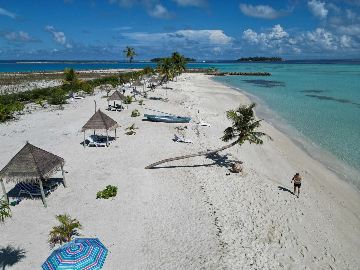 О да, и это — Мальдивы. Белоснежный песок, лазурная вода, нежное солнце и легкий бриз, который играет с волосами.