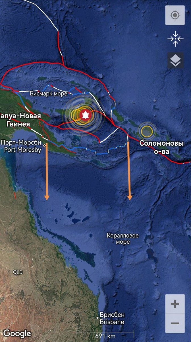 Есть вероятность землетрясения М6-7 в южной части Соломонова моря в течение 9 дней ==== There is a possibility of an M6-7 earthquake in the southern part of the Solomon Sea within 9 days