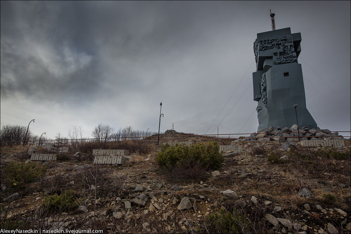 На фотографиях мемориал "Маска скорби", расположенный на сопке Крутая в Магадане. В своё время это монументальное произведение произвело на меня поистине неизгладимое впечатление. Посвящён он жертвам политических репрессий и представляет собой 15-метровую скульптуру авторства Эрнста Неизвестного, открытую 12 июля 1996 года. Изваяние представляет собой стилизованное лицо человека, из левого глаза которого текут слёзы в виде маленьких масок. А правый глаз изображён в форме окна с решёткой. На обратной стороне установлена бронзовая скульптура плачущей женщины под неканоническим распятием. Внутри монумента находится копия типичной тюремной камеры. На сопке Крутая в сталинские времена находилась «Транзитка» — перевалочный пункт, с которого этапы заключённых отправляли по разным колымским лагерям. К чему это всё? А просто позавчера гениальному скульптору исполнилось ровно 100 лет.
