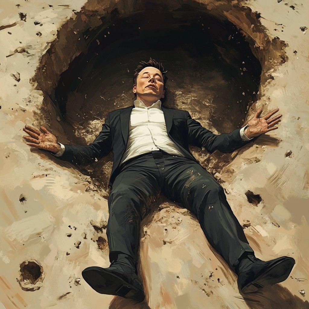Создано на основе запроса: in the style of studio ghibli, Elon Musk getting swallowed by a sink hole