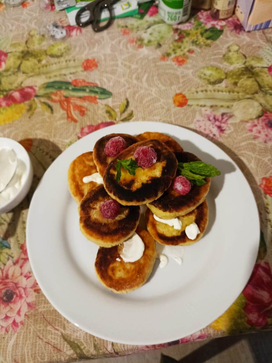 На завтрак испекла сырники. А на второй завтрак решила побаловать мужа и его приятеля, и испекла хичины.