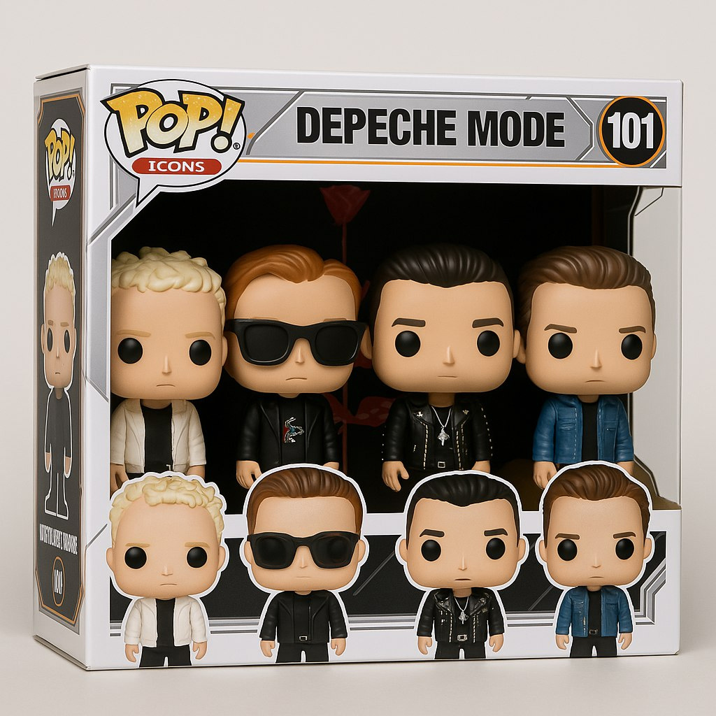 Представьте, что вам подарили такие фигурки участников любимой группы. Вы бы обрадовались? Или может вас не особо трогают предметы культа и вам хватает только их музыки? Тем более что оригинальные фигурки Funko Pop! стоят весьма дорого =) Но посмотреть можно вполне себе бесплатно. Итак погнали! Первая фигурка - Дейв Гаан в золотые годы группы. Косуха, белые джинсы, белая майка, стойка микрофона, которой так каqajdj крутить во время выступления. Времена Music For The Masses и легендарного 101 концерта. Мартин Гор в костюме из чуть более ранних времен периода Black Celebration. Но гитара - та самая, что была в туре Music For The Masses. Учтите, что это - стилизация и всех тонкостей и деталей оригинального инструмента игрушка не передаёт ) Маэстро Алан Уайлдер времен Some Great Reward, со стильным хаером. "С помощью расчёски поднимите волосы наверх, чтобы причёска напоминала буханку хлеба. Сразу же залейте лаком для волос" (с) Алан Уайлдер. Рядом с Аланом миниатюрный синтезатор. Ну и