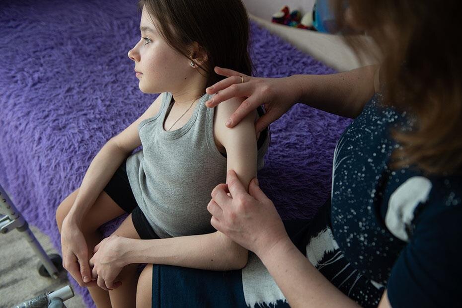 Марина живет с родителями и сестрой в городке Алатырь в Чувашии. В 16 лет она по росту как шестилетняя девочка. А еще ее всю жизнь преследуют переломы – уже десятки, если не сотни. Виновата очень редкая и тяжелая форма несовершенного остеогенеза – врожденной хрупкости костей. Современная медицина умеет справляться с этим заболеванием, но лечение остеогенеза – сложная и очень долгая история. Марина проходит этот путь вместе с Русфондом – наши читатели уже не раз ей помогали. Сейчас девочке нужно укрепить сломанную плечевую кость растущим титановым штифтом, чтобы спасти руку. – Мама, не мешай, пожалуйста, – просит Марина. – Я сама хочу Даше помочь, мы разберемся – я же большая!