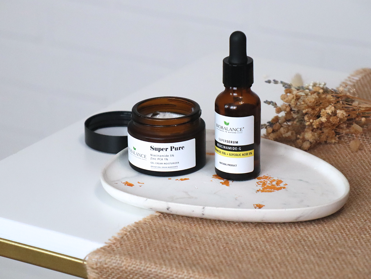 Здравствуйте, уважаемые читатели моего блога. В борьбе за сохранение хорошего качества кожи при покупке тех или иных средств смотрю на состав и выбираю те продукты, которые имеют доказанную эффективность. И вот при выборе очередного ухода решила я комплексно действовать на кожу, поэтому приобрела крем и сыворотку бренда BIOBALANCE (Турция), главным действующим веществом которых является ниацинамид. Сейчас я в том возрасте, когда прыщи еще не прошли, а уже морщинки появляются. Нет, на самом деле особых проблем с высыпаниями у меня никогда не было — лишь единичные их проявления в определенные дни цикла. Однако проблема в том, что моя кожа склонна к пигментации, поры расширены и без особого ухода вид тот еще, и ко всему этому 2-3 прыща ну никак не делают из меня красавицу. Именно поэтому для поддержания хорошего состояния кожи я выбираю те средства, которые решают все описанные мною проблемы. Сегодня хочу рассказать о своем обновленном уходе и просто поделюсь, чего стоит ожидать от средст