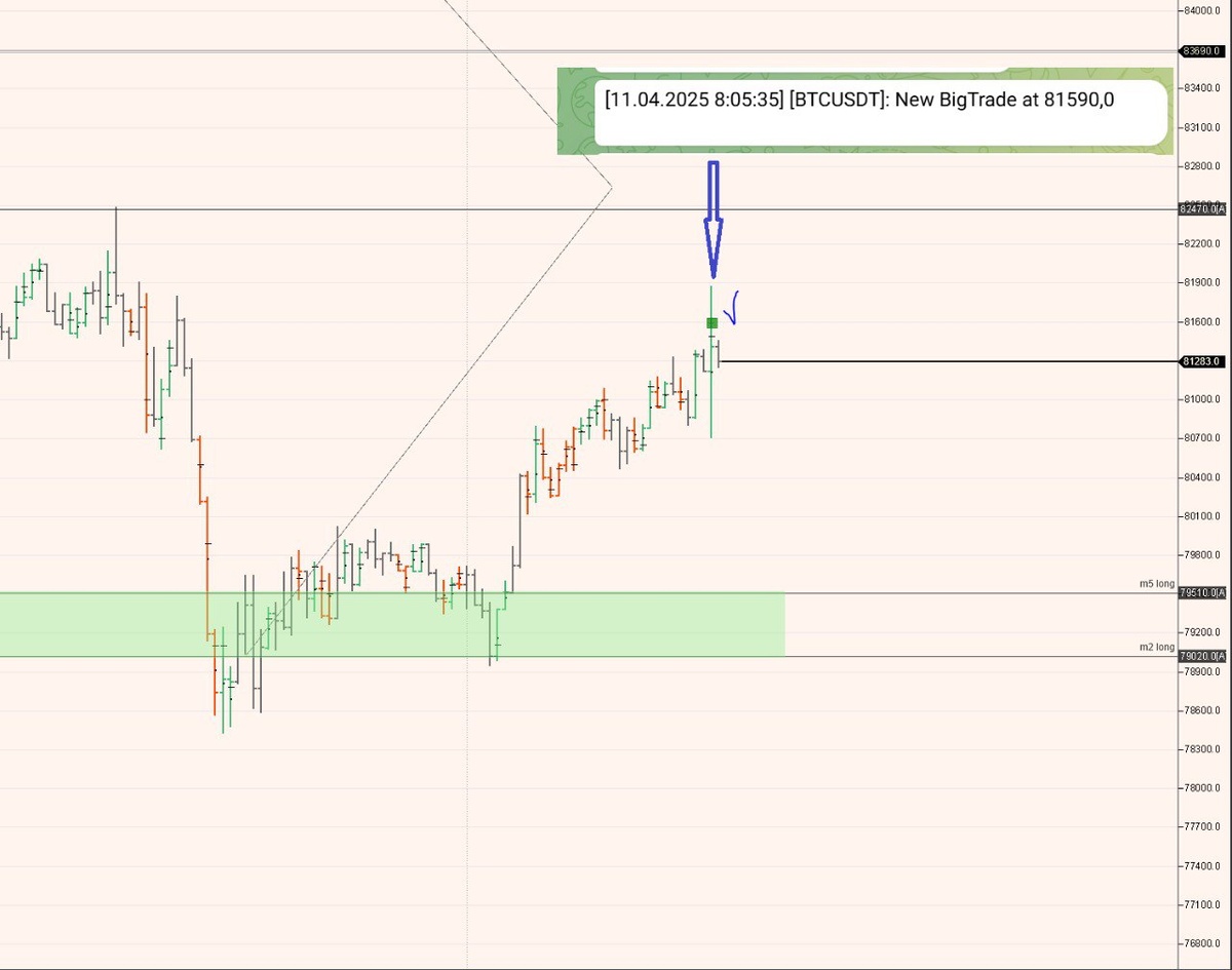 В ответ на пост Почему я тут решил закрывать лонг позицию по биткойну? Потому, что на графике проскочил сигнал BigTrade. Это признак возможного локального завершения движения. Не ИИР 📌 P.S. Ресурс, где можно ознакомиться с описанием стратегий, получать сигналы от платформы и изучать теоретический материал по принципам торговли которые использую я, находится на реконструкции, доступ пока закрыт. 💬 Желающие присоединиться с открытия – прошу оставлять заявки моему помощнику - @n_o_buo