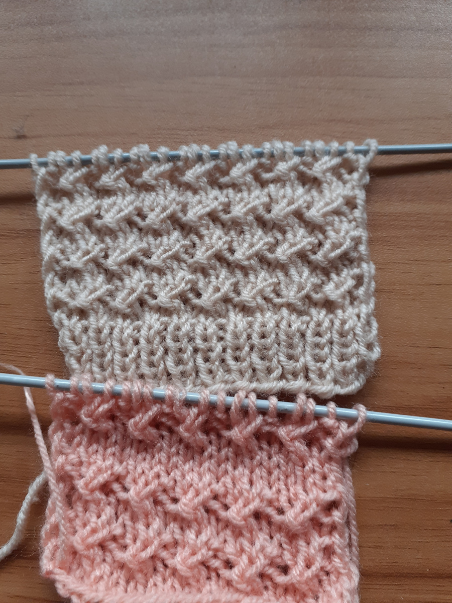 Вяжем спицами. Таким узором можно связать всё изделие а также промто украсить. Допустим вы решили связать кофточку или кардиган , жилет или ещё сто то другое лицевой или изнаночной гладью.И я предлагаю по низу изделия ,по рукавам связать несколько рядов таким узором. Круглая кокетка сверху с несколькими поперечными полосками тоже будет смотреться наряднее . С узором можно экспериментировать. Полоски можно расположить дальше друг от друга. Видео по узору на площадке Рутуб ,внизу будет активная ссылка на видео. Просто нажмите и попадёте в Рутуб на видео. А пока описание узора. Состоит из 4 рядов в высоту и 3 петель в ширину. При поворотном вязании добавляем 1 петлю для симметрии и 2 петли кромочный. Начинаем вязание 1 го ряда с лицевой стороны изделия. 1 ряд все лицевые петли. 2 ряд все изнаночные петли. 3 ряд 1 кр петля.* ( 1 изн., п. следующие 2 петли вяжем так: провязываем 2 - ую петлю лицевой за заднюю стенку , правую спицу заводим с изнаночной стороны , 1 - ую петлю вяжем лицевой за