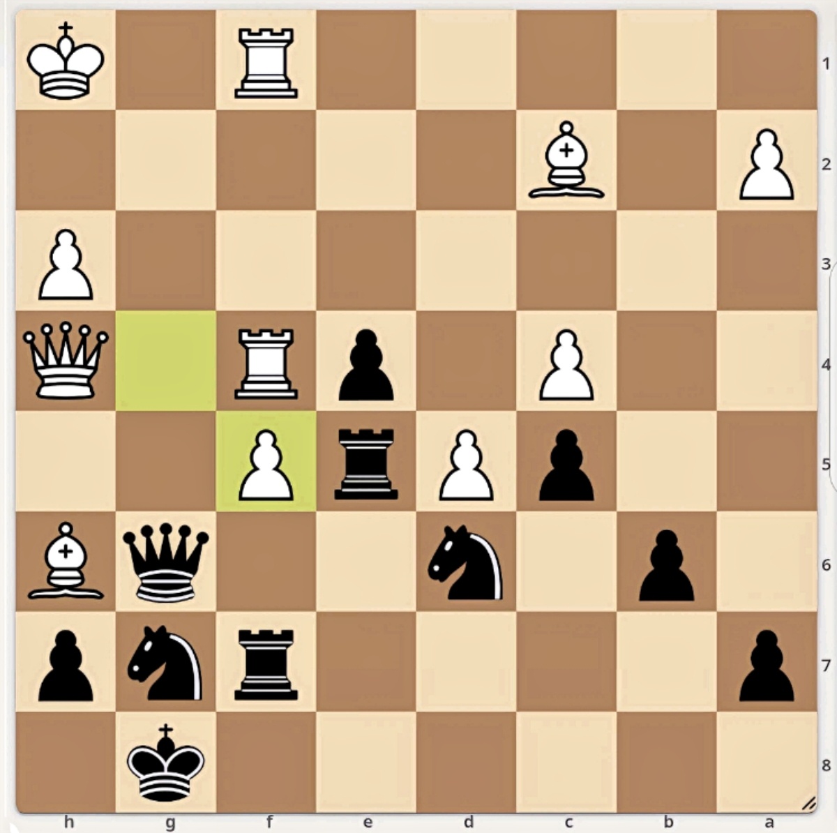 Шахматная задача. Найдите лучшее продолжение для черных. Черные начинают и получают преимущество. Chess problem. Find the best continuation for Black. Black starts and gets an advantage. Открытый для всех шахматный чат ( Телеграм-канал). Размещайте свои ссылки, статьи и ролики на тему шахмат. Open for all chess chat (Telegram channel). Post your links, articles and videos on the subject of chess.. [Event "Casual correspondence game"] [Site "https://lichess.org/iR0RK6hA"] [Date "2025.04.11"] [White "lichess AI level 8"] [Black "_"] [Result "1/2-1/2"] [GameId "iR0RK6hA"] [UTCDate "2025.04.11"] [UTCTime "06:28:22"] [WhiteElo "?"] [BlackElo "1500"] [Variant "From Position"] [TimeControl "-"] [ECO "?"] [Opening "?"] [Termination "Normal"] [FEN "6k1/p4rnp/1p1n2qB/2pPrP2/2P1pR1Q/7P/P1B5/5R1K b - - 0 34"] [SetUp "1"] [Annotator "lichess.org"] 34... Ndxf5 35. Rxf5 Rexf5 36. Rg1 Rf1 37. Qd8+ Rf8 38. Qxf8+ Kxf8 39. Rxf1+ Ke7 40. Bxg7 Qxg7 41. Bxe4 Qd4 42. Bf3 Qxc4 43. Re1+ Kd8 44. Kg1 Qxa2