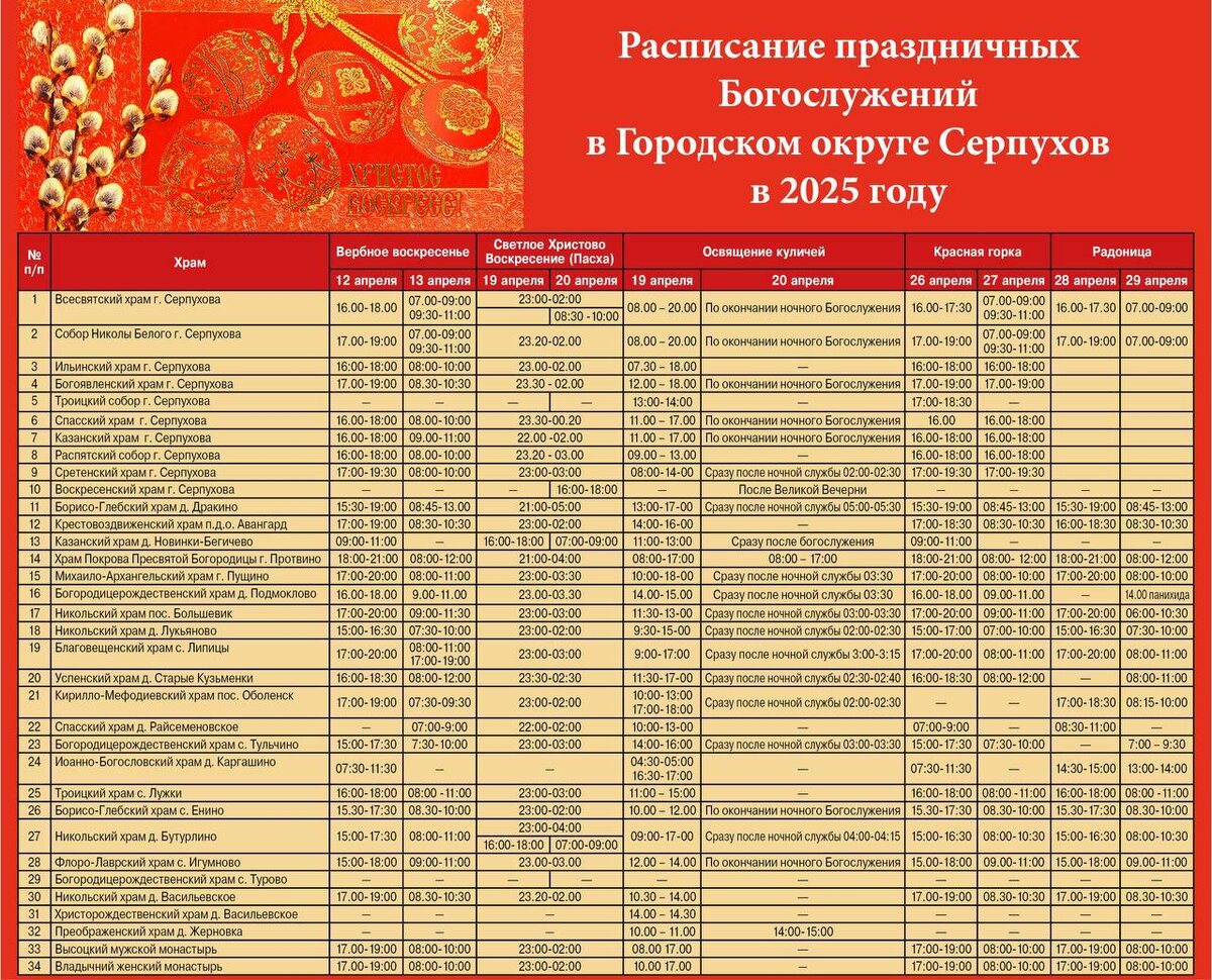 🙏В Городском округе Серпухов сформировано расписание праздничных Богослужений
