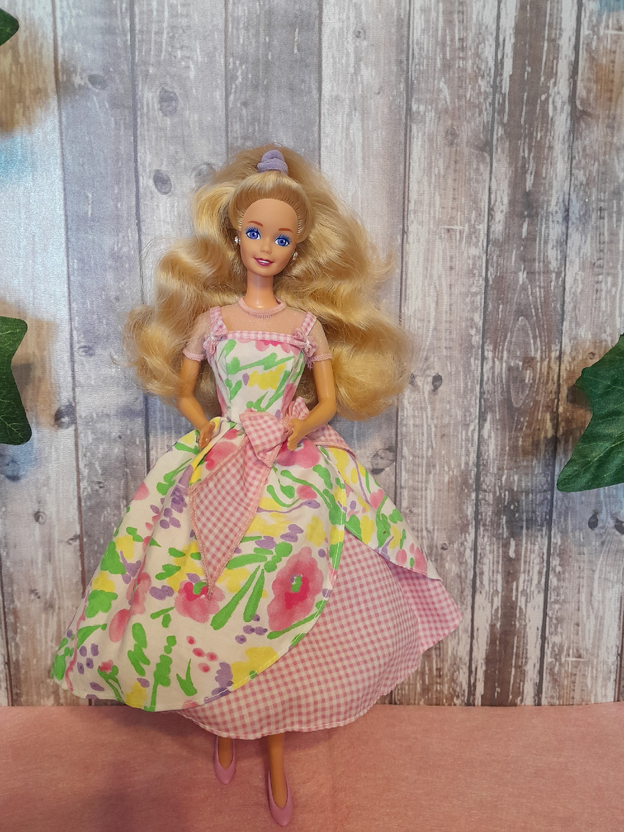 Платье, о котором я вам расскажу, должно было приехать ко мне к 1 марта. Я планировала статью, в которой Зимняя королева Элинор Флоренс передаст бразды правления Весенней королеве и все будет хорошо🌞🌞🌞 Но в районе Самарского СЦ платье свернуло не туда)) Сначала я наблюдала, как оно тусуется там без движения четверо суток. Как раз был праздник 23 февраля, думаю, может, заработались люди или заотдыхались, но на 5 день написала обращение. Платье нашлось. В Сибири)) Там оно проехалось по нескольким городам и попало в Екатеринбург. И только потом ко мне)) Само платье от винтажной пасхальной Барби. У Маттел много выпусков к этому чудесному весеннему празднику, и я подумывала поселить себе куколку в пышном платье. Но учитывая размеры моей коллекции, каждая новенькая теперь подвергается тщательному обдумыванию)) Встретив пасхальное платье на авито, мне показалось куда интереснее купить и подарить его Весенней куколке. Заодно порадую ещё одну девочку в рамках челленджа "Каждой кукле весну