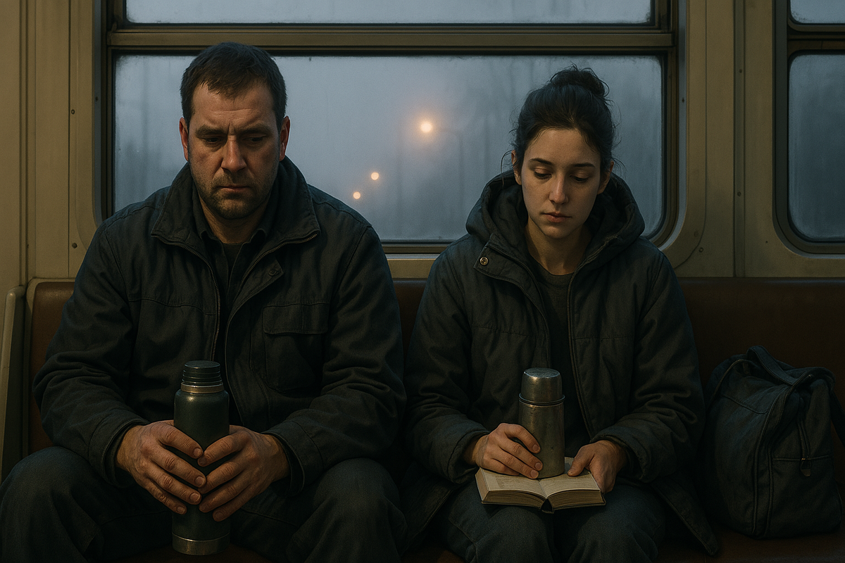 Но была в этой рутине одна тихая примета: Соседка в пуховике. Антон не мог бы точно сказать, почему именно она приковывала внимание. Может, потому что у неё тоже был зелёный термос, может, потому что она смотрела в книгу так, словно она — дверь в другой мир.