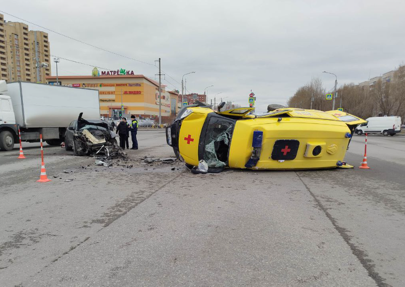 В Тюмени перевернулась машина скорой помощи после столкновения с BMW