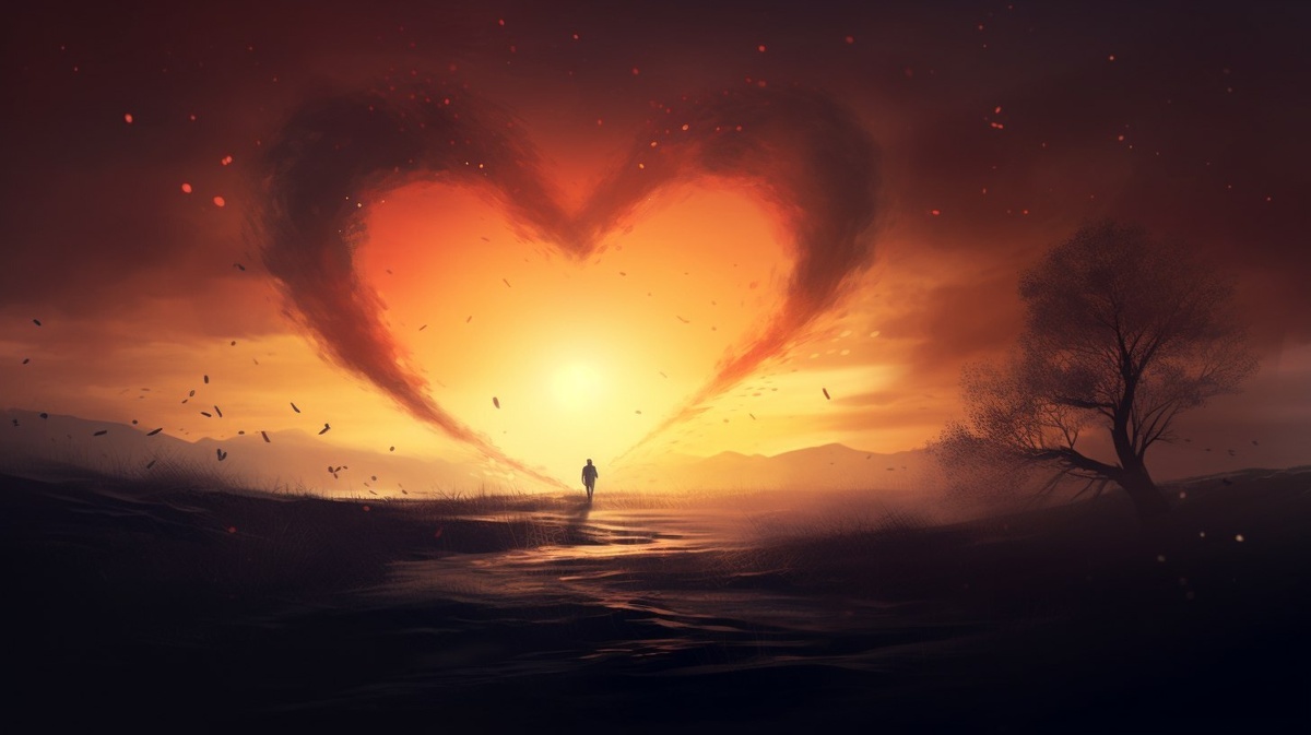 Создано на основе запроса: A soft, emotional landscape with a glowing silhouette fading into a misty distance. A heart-shaped light or subtle aura remains in the foreground, symbolizing deep emotional connection. Warm sunset tones, golden haze, soft-focus dreamy atmosphere, gentle breeze, symbolic depth"