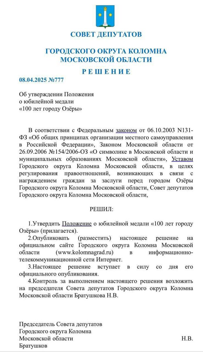 Ко дню города решили создать медаль «100 лет городу Озеры».