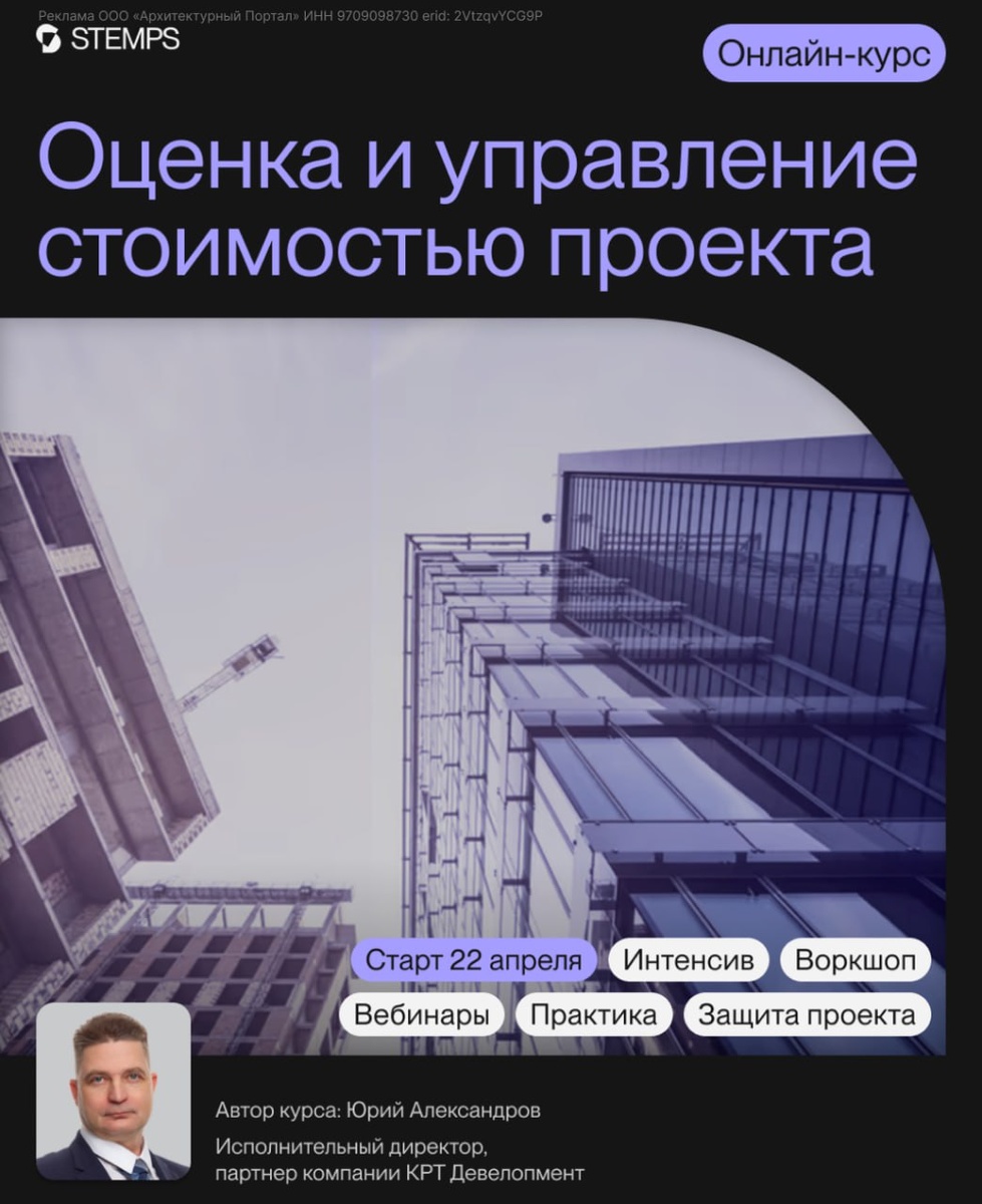 Автор курса — Юрий Александров, партнер и исполнительный директор компании КРТ Девелопмент. Среди его кейсов: УД Президента РФ, ЖК «Маленькая Франция», Резиденция «Дворец конгрессов» и другие крупные проекты.
