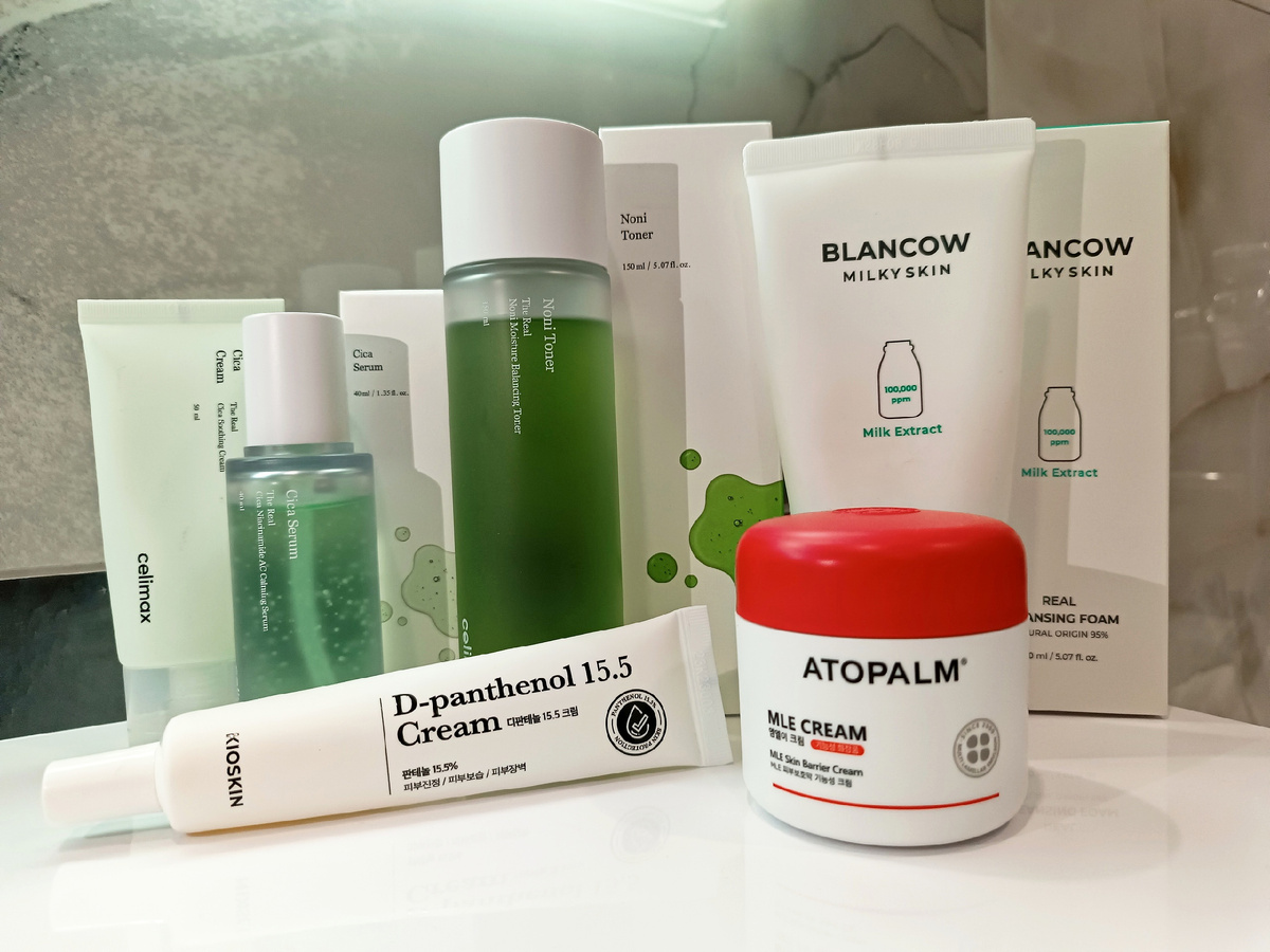 "Но что, если кожа всё ещё злится?" — тогда на помощь приходил KIOSKIN с пантенолом 15.5% (это как пожарный для кожи) или ламеллярный крем Atopalm (для особо тяжёлых случаев).