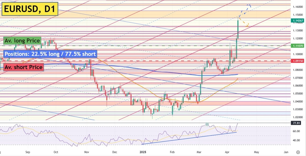 💡Сейчас рынками управляет геополитика. На лицо конфликт США и Китая, так как остальные страны были освобождены на 90 дней от тарифов и сейчас идут торги по поводу дальнейших условий. Китай же, видимо, решил идти до конца. И основной вопрос - кто первый сдастся. Учитывая "гибкость" нового президента США, вообще не удивлюсь, если в выходные они созвонятся с Си и огласят о мире, дружбе и жвачке😀 А может быть пойдут еще дальше и тогда торговля между этими двумя странами просто встанет. Как пойдет - точно никто не знает, поэтому пока - снижаем риски. Ну и осторожненько торгуем от уровней👍🏻