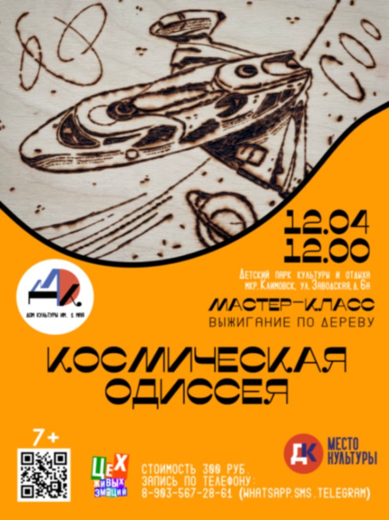 ✨ Мастер-класс по выжиганию 🔥Ждём Вас в пункте проката, будем создавать красоту огнём! 👉Все материалы предоставляются, а результат вашего творчества останется с вами на память! 🚫 Возраст: 6+ 📆 12.04.2025 🕒 12:00 🏢 Детский парк культуры и отдыха 📍 г. Подольск, мкр. Климовск, ул. Заводская, 6а 💰 Цена: 300 ₽ 🎫 Купить билет: https://clck.ru/3JgjU2 #webПодольск ✅ Мероприятия Подольск https://dzen.ru/id/66ed500f7b5671493eca3fd6 http://vk.com/podolsk_events http://dzen.ru/podolsk_events