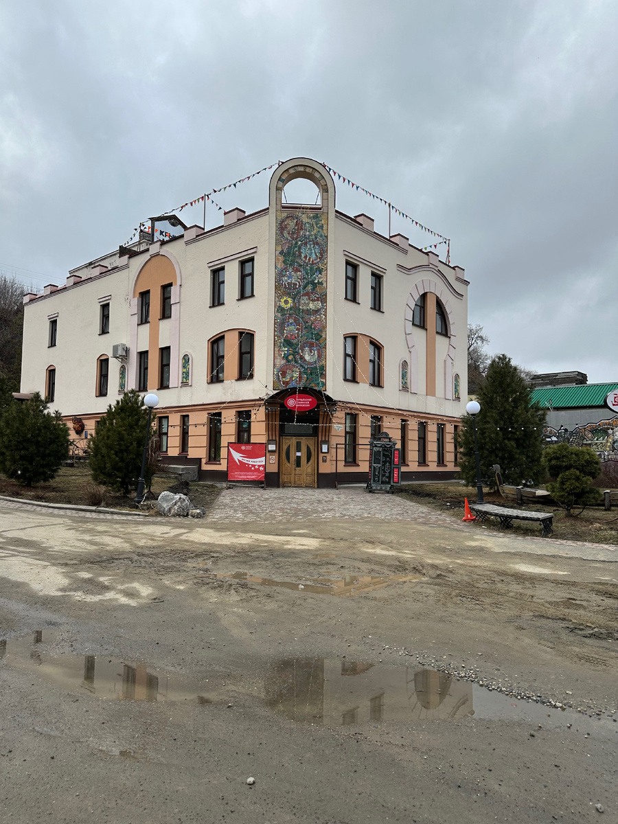 В этом году в Томске проходил ХХ Сибирский фестиваль керамики. Он открылся ещё в феврале, но я всё никак не могла добраться. Стараюсь бывать на нём каждый год. В субботу, 5 апреля, после написания Тотального диктанта у меня как раз было свободное время. Выставке оставалось работать ещё неделю, поэтому поехала в Первый музей славянской мифологии, выставка традиционно проходила там. У музея сейчас встречает маска из серии Лики Сибири. Билет стоил 250 рублей, все экспонаты нынче поместились в одном зале. Сразу же яркостью красок обратило на себя внимание Филимоновское дерево, которое стало плодом творчества семьи Кехаиди. Супруги возрождают филимоновскую игрушку (Одоевский район Тульской области). Символа дерева раньше не было в этом промысле, а сейчас такие деревья называют чудо-деревом, семейным деревом. И здесь же висят керамические тарелочки, которые изготовила керамист из Омска (не смогла быстро найти фамилию, посмотрю) и любовалась ими я еще в сентябре 2024 года на выставке са