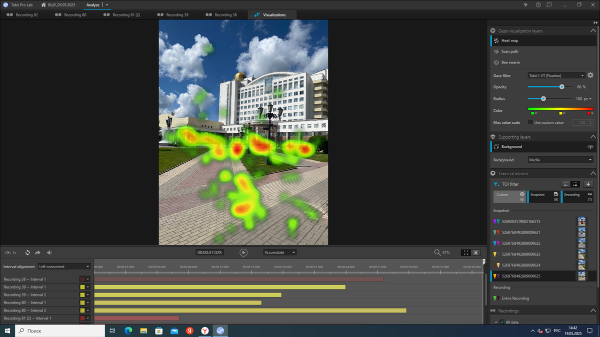 - 🔥 Красный "вулкан" - здесь взгляды "застревают" чаще всего (50-100% фиксаций)