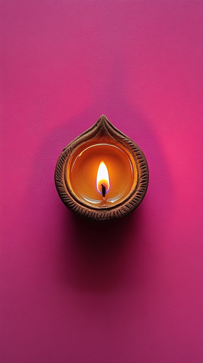 Создано на основе запроса: Top view of a diya lamp in the center on a magenta wall, no shadow cast from it. Photorealistic, cinematic, bright, warm lighting, detailed. Shot taken with a Canon EOS camera and a 20mm lens