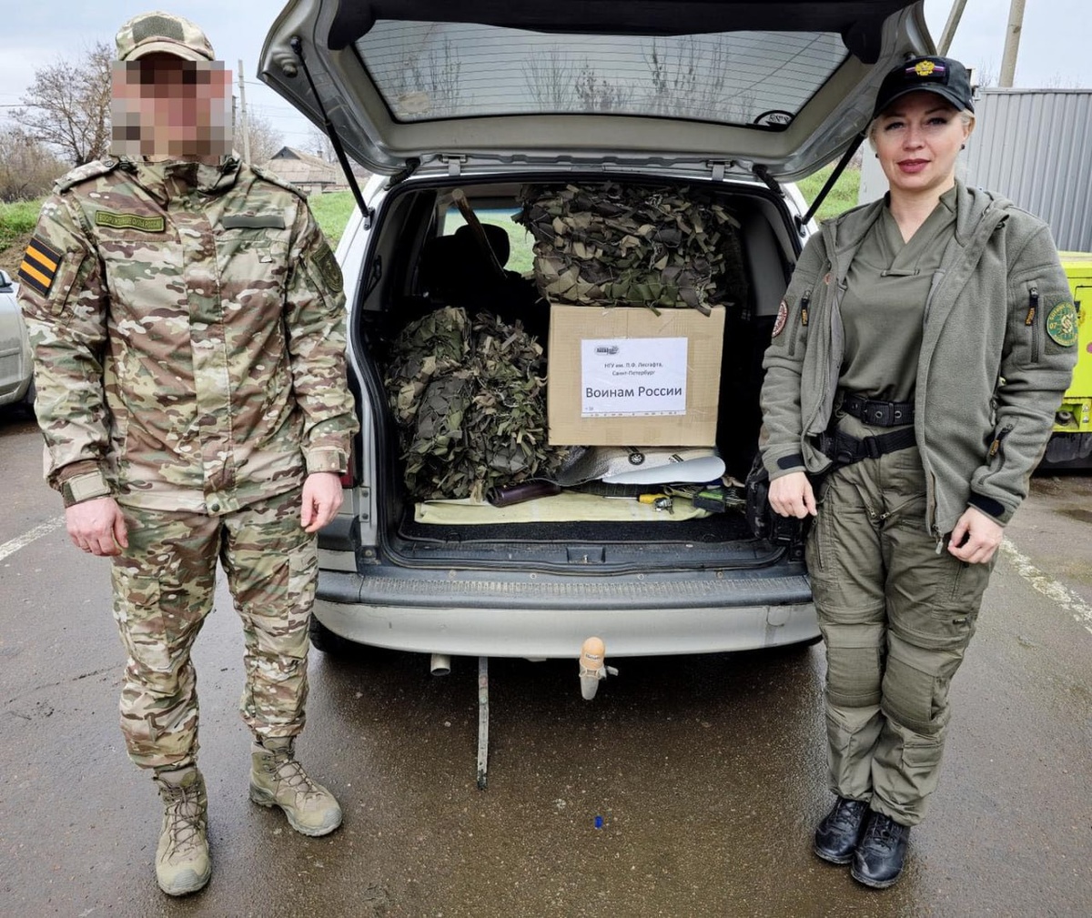 Передали маскировочные сети, изготовленные руками плетунов спортивного университета им. Лесгафта, бойцам гаубичного артиллерийского дивизиона!