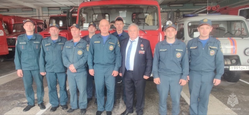 В соответствии с планом подготовки и проведения мероприятий Главного управления МЧС России по Краснодарскому краю, посвященных Дню участников ликвидации последствий радиационных аварий и катастроф и памяти жертв этих аварий и катастроф в 121 пожарно-спасательной части 5 пожарно-спасательного отряда проведена встреча с председателем Курганинской районной организации «Союз Чернобыль, Георгием Николаевичем Карпук. Георгий Николаевич с первых дней участвовал в ликвидации последствий ядерной катастрофы на Чернобыльской АЭС, за что указом Президента России награждён орденом Мужества. Встреча прошла в рамках воспитательной работы по формированию и развитию у личного состава высоких профессиональных, гражданских, нравственных качеств личности на примере добросовестного и самоотверженного выполнения профессионального долга. Личный состав части из первоисточника узнал о происшедшей 39 лет назад трагедии, которая унесла с собой много человеческих жизней и нанесла непоправимый вред здоровью и окру
