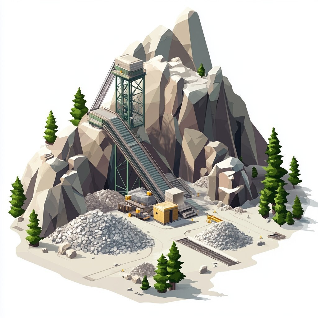 Создано на основе запроса: vector graphics in isometry, crushed stone quarry crushing plant for crushed stone, crushed stone crusher plant, mountains and forest