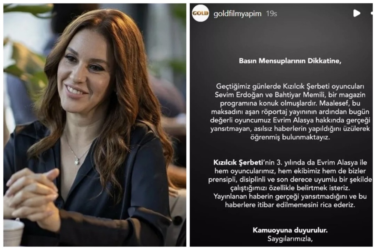 Актрису, сыгравшую Кывылджим в сериале «Клюквенный щербет», коллеги по съемке обвинили в неуважительном отношении к съёмочной группе. Недавно продюсерская компания сериала выступила в защиту Эврим Аласья, известной актрисы, которая стала объектом обвинений в плохом обращении с сотрудниками съёмочной площадки. В одном из недавних интервью в телепередаче «Давай поговорим» на телеканале TV8 Севим Эрдоган, исполнительница роли Леман, и Бахтияр Мемили, сыгравший Зюлькера, сделали заявления, которые привлекли внимание. На вопрос о том, есть ли на съёмочной площадке актёры, которые проявляют эгоизм, гости ответили утвердительно. В качестве примера они назвали Эврим Аласья. Обвинения в адрес популярной актрисы быстро распространились, и Gold Film, продюсерская компания сериала «Клюквенный щербет», опубликовала официальное заявление в своих аккаунтах в социальных сетях. Недавно актеры Севим Эрдоган и Бахтияр Мемили были гостями таблоидной программы без одобрения и ведома Gold Film. К сожалению