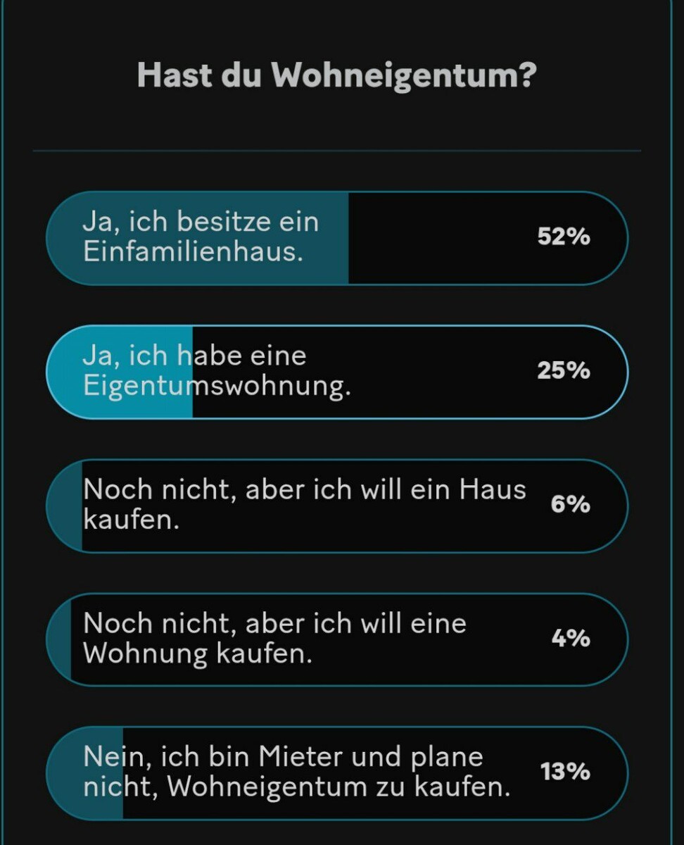 📌 " У вас есть дом? Да, у меня отдельный дом. - 52 % Да, у меня есть кондоминиум - 25% Пока нет, но я хочу купить дом - 6% Пока нет, но я хочу купить квартиру - 4% Нет, я арендатор и не планирую покупать жилье. - 13% 👀 Хм.. нешто брешут. В целом по стате 36 % лишь имеют свое собственное жилье #Швейцария