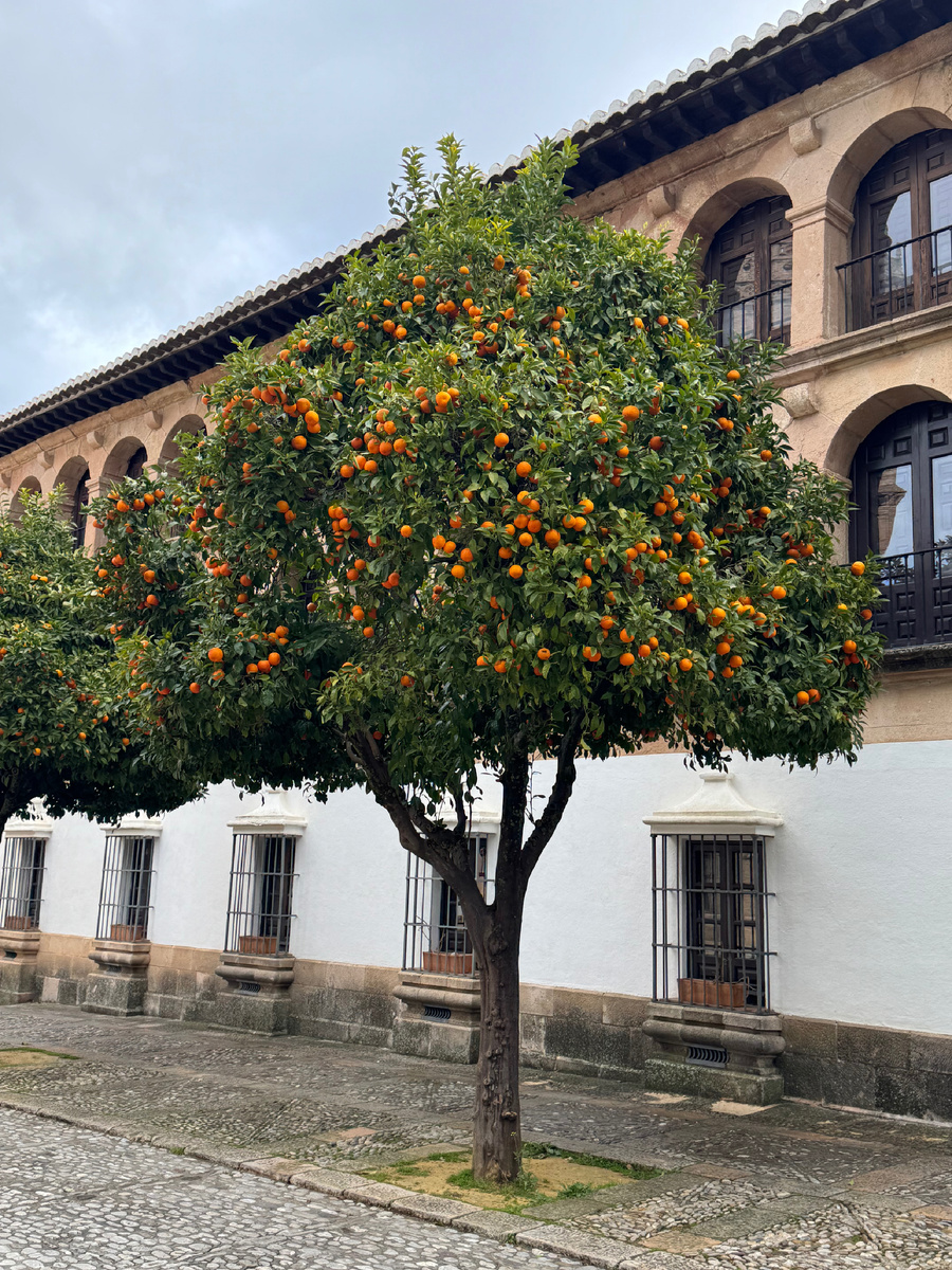 Мы остановились рядом с дворцом сначала мавританских, затем кастильских царских особ. На заборе нас приветствовал живой павлин. Извините, что не анфас. Осанка у «птица» царственная!