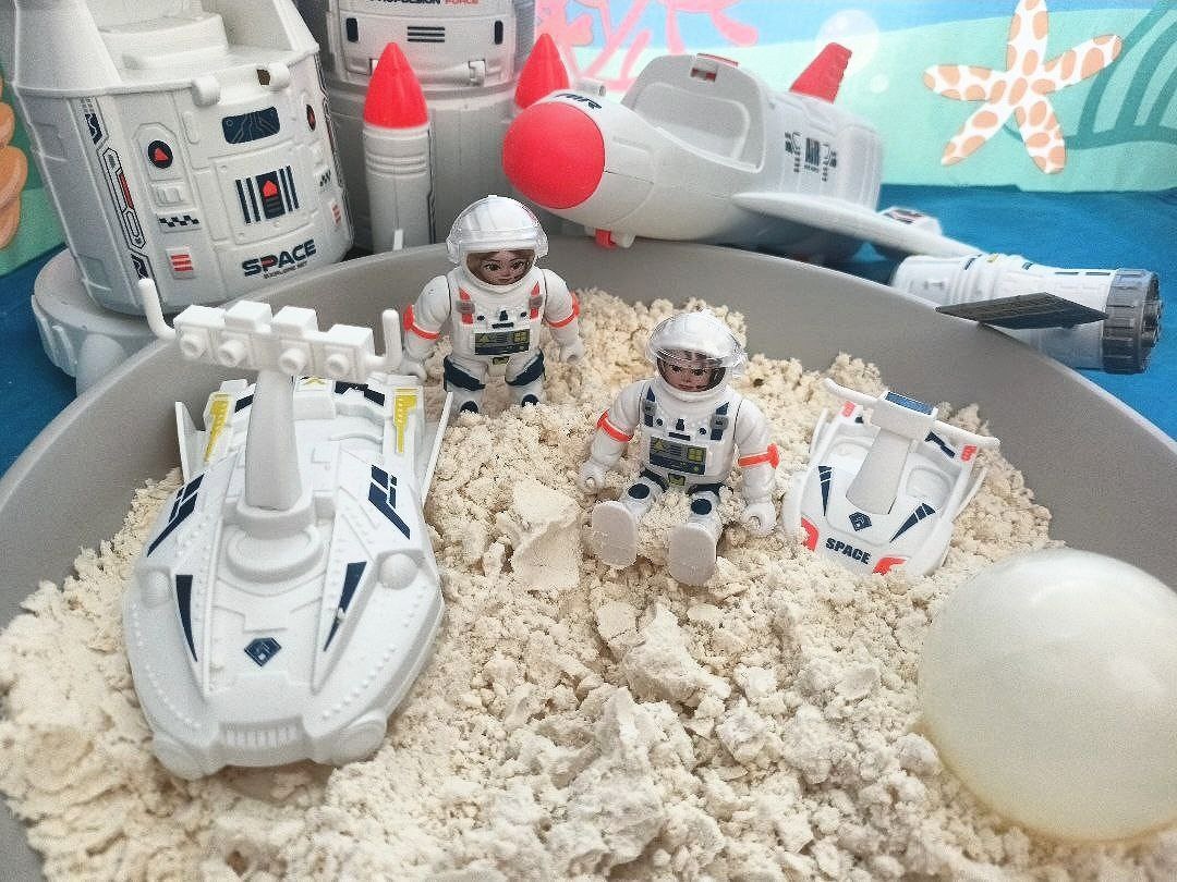 Сенсорная коробка «Космос» ❤️ Наполнение: 🌙мучной песок 🌙набор для ролевой игры «Космос» 🌙шарики для сухого бассейна Мучной песок ✏️✏️✏️🖌️✏️ Что понадобится: 🤍мука 🤍масло Как сделать: В миску с мукой понемногу добавляйте масло. Разминайте руками до однородной консистенции. Если из муки можно слепить комок, который не развалится, значит тесто готово. 📝 В комментарии добавлю видео приготовления. Играть с таким материалом — одно удовольствие. Он прекрасно лепится и не липнет к рукам. Храниться до полугода в контейнере. #развивашки