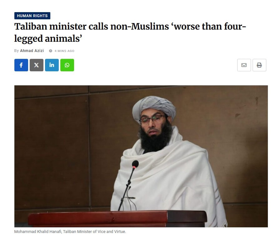 ⏺"Немусульмане «хуже четвероногих животных»" - замминистр по делам добродетели движения «Талибан»*